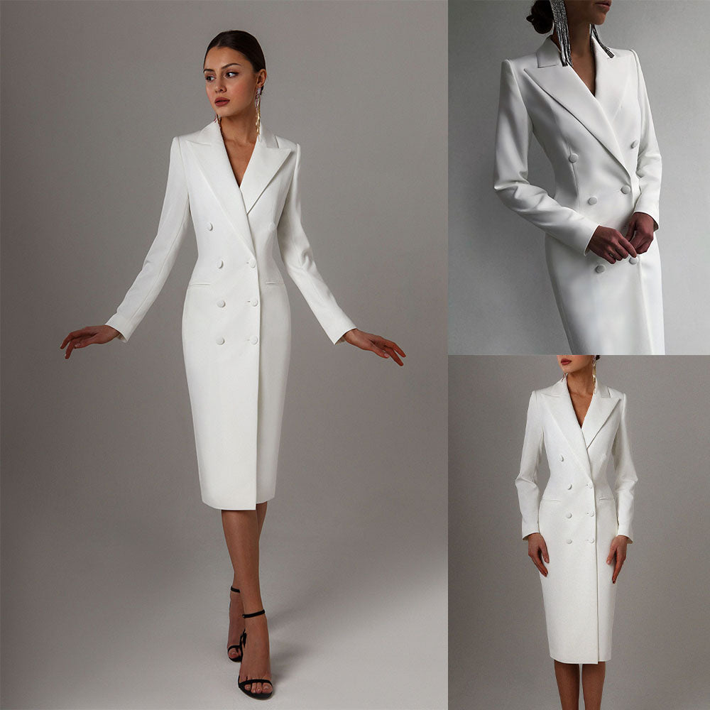 Autumn White Double Breasted Women Long Jacket Suits Ladies Prom Evening Guest Formal Wear Custom Made
