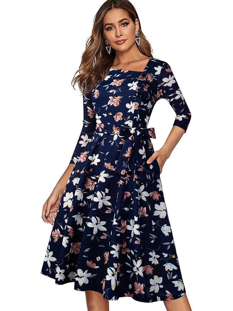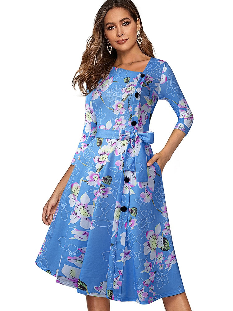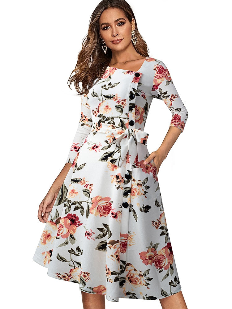 Nice-forever Spring Solid Color with Button Retro Elegant Dresses Party Flare Swing Women Dress A241